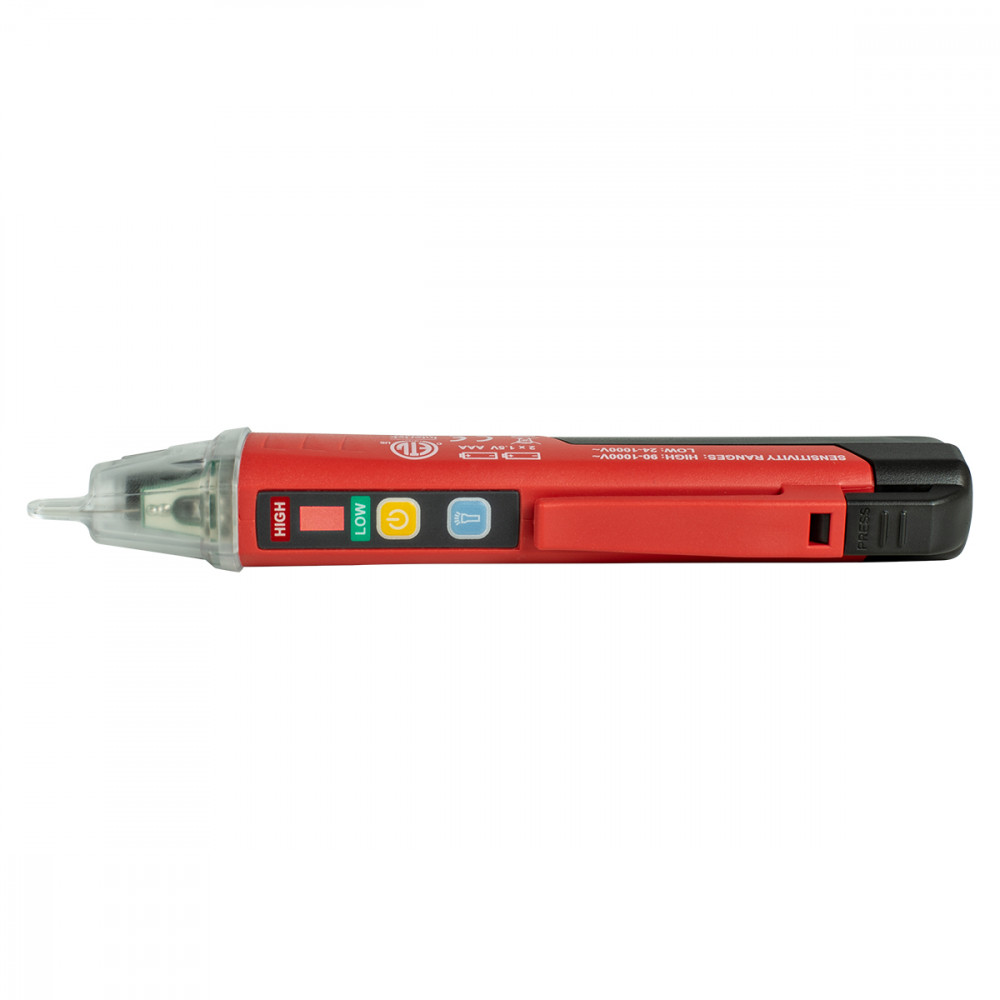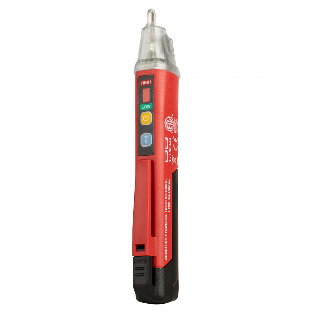 Эта модель выполнена в виде обычной пишущей ручки благодаря чему удобно лежит в руке и помещается в карман. Специальная клипса помогает зафиксировать прибор на рабочей одежде или инструментальном поясе. При работе в темноте или при слабом освещении, яркий фонарь помогает точно и безопасно произвести проверку.