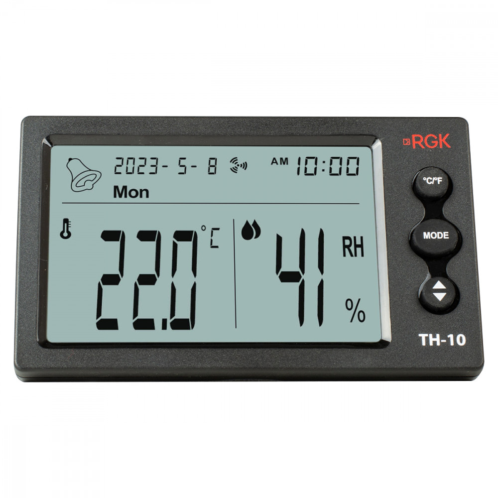 Отображение времени и даты упрощает занесение данных в журнал и другую документацию. Встроенный в цифровой термогигрометр RGK TH-10 будильник можно использовать как звуковое напоминание о необходимости проверки климатических параметров; для этого хорошо подходит специальный режим, при котором сигнал подается каждый час.