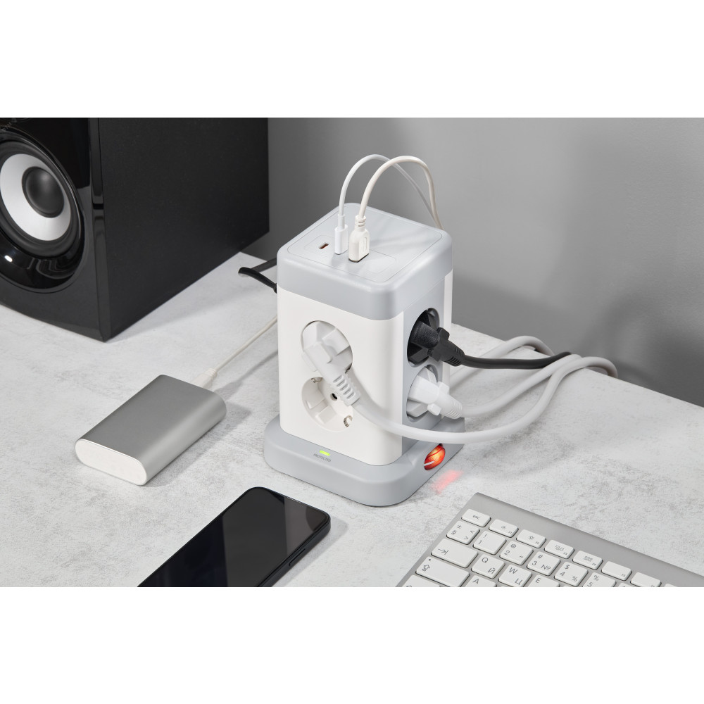 Описание DOMINIC Удлинитель У08K 8 мест 2P+PE 1,5м 3х1,0мм2 16А/250В USB A+C 20Вт серый IEK DN-YP30-16-08-01-ZKU-K41