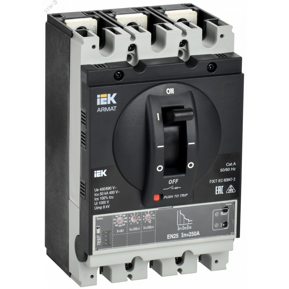 Описание Выключатель автоматический в литом корпусе ARMAT 3P типоразмер G 50кА 250А расцепитель электронный стандартный AR-MCCB-3G-050-0250A-ELSC