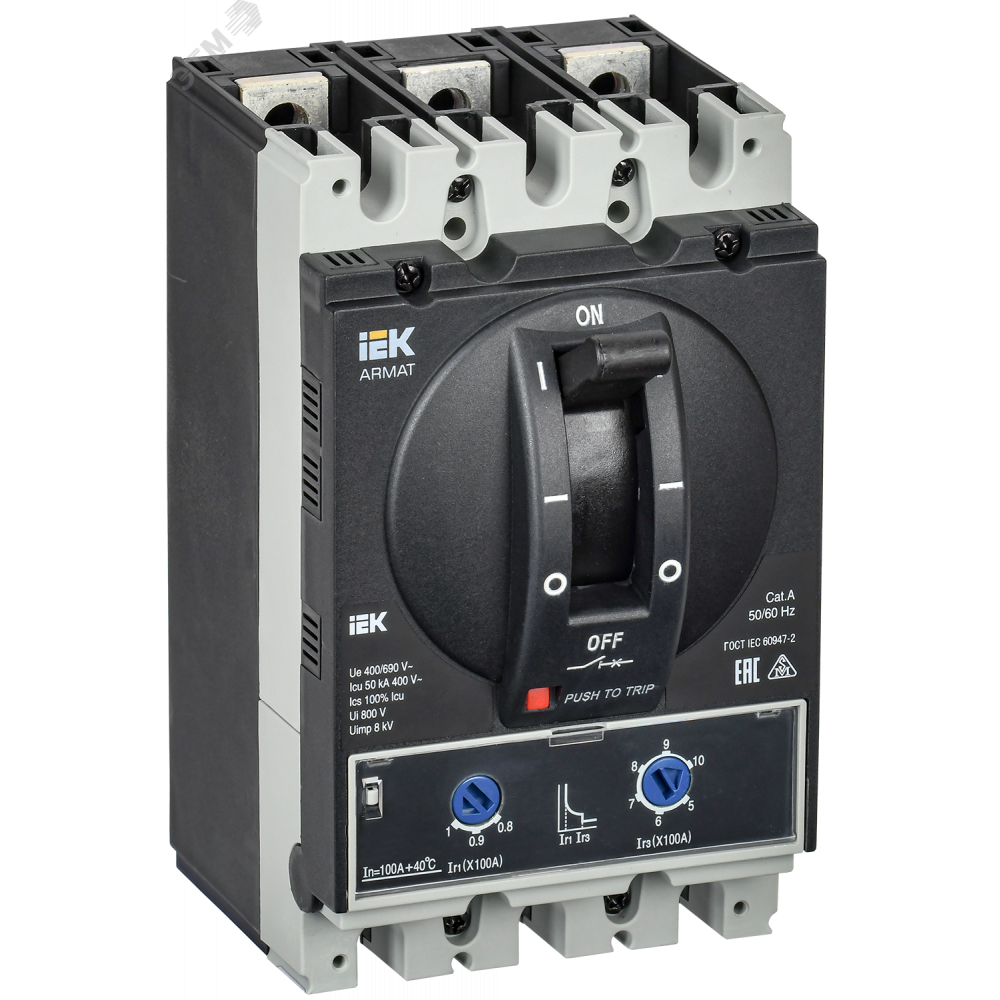 Выключатель автоматический в литом корпусе ARMAT 3P типоразмер A 50кА 100А расцепитель термомагнитный регулируемый AR-MCCB-3A-050-0100A-ATUC, Выключатель автоматический силовой