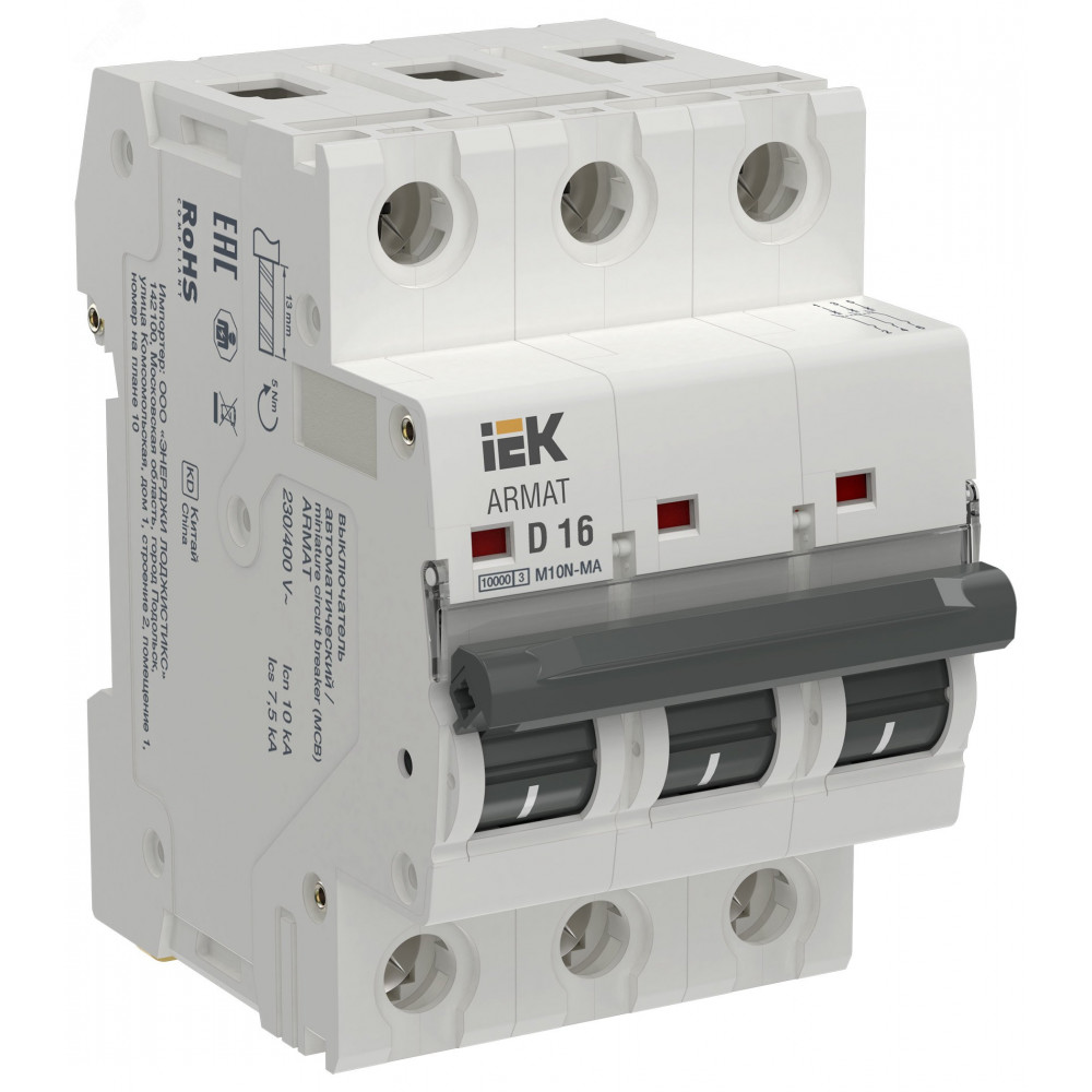 Описание Выключатель автоматический без теплового расцепителя M10N-MA 3P D 16А AR-M10N-MA-3-D016