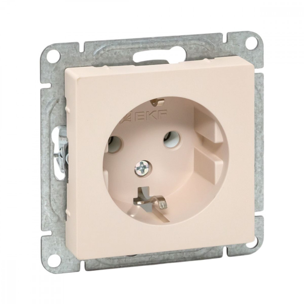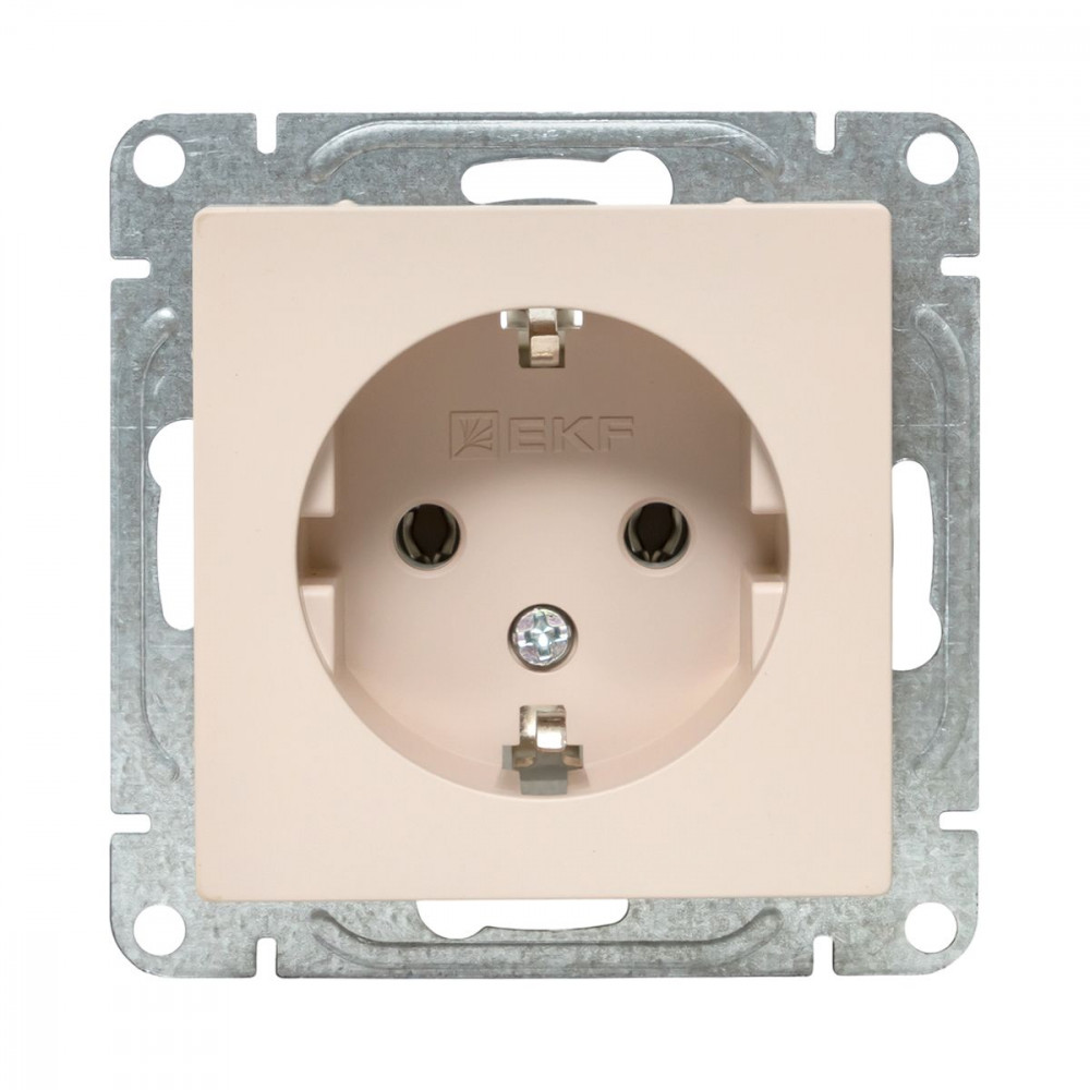 Описание Механизм розетки, 16А, с заземлением, без шторок, кремовый Эпика EKF UP1-SOI-110