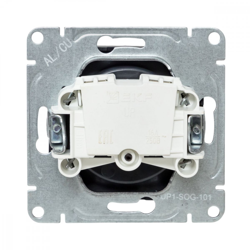← Механизм розетки, 16А, без заземления, без шторок, графит Эпика EKF UP1-SOG-100