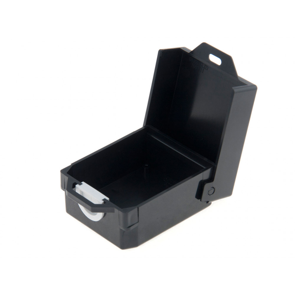 Корпус из прочного пластика, черный, с откидной крышкой