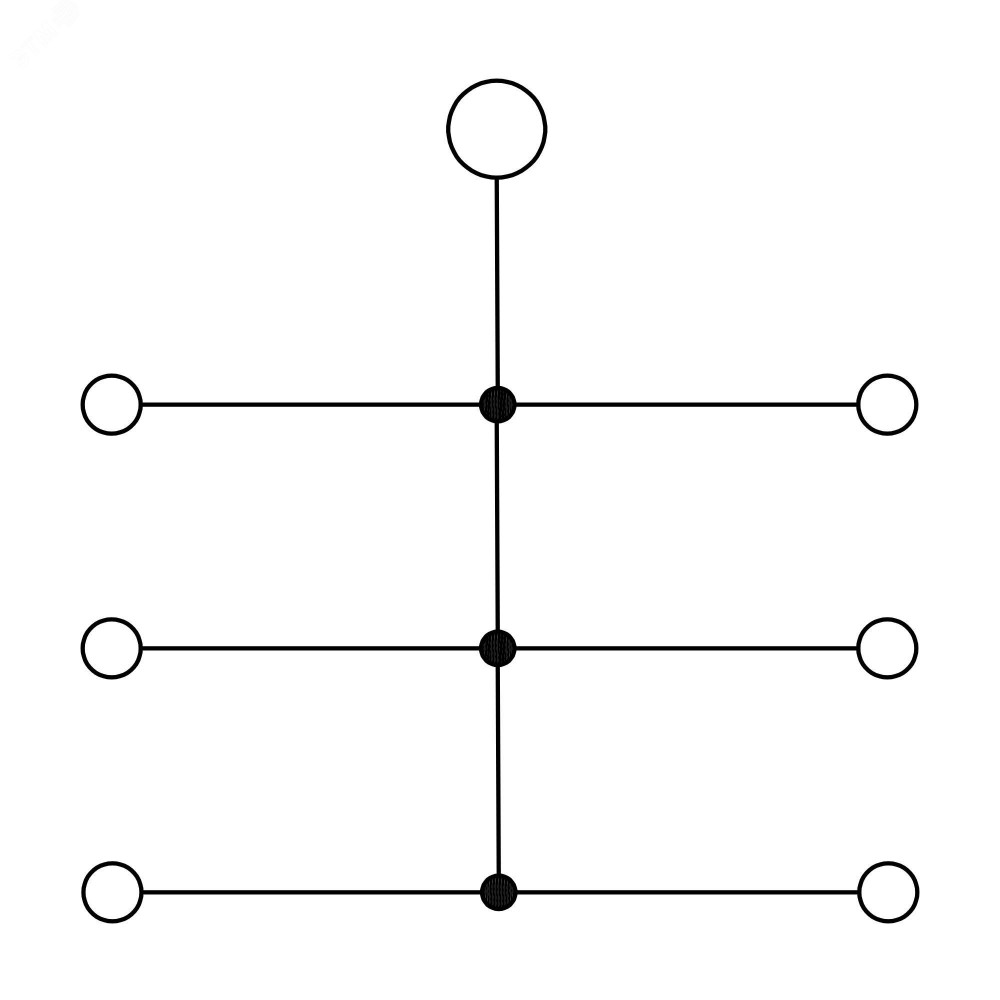 Описание Блок распределительный с гориз. адаптером на рейку шириной 35мм, зажим push-in, 1 ввод 6 кв.мм, 6 точек подключения 2,5 кв.мм, серый