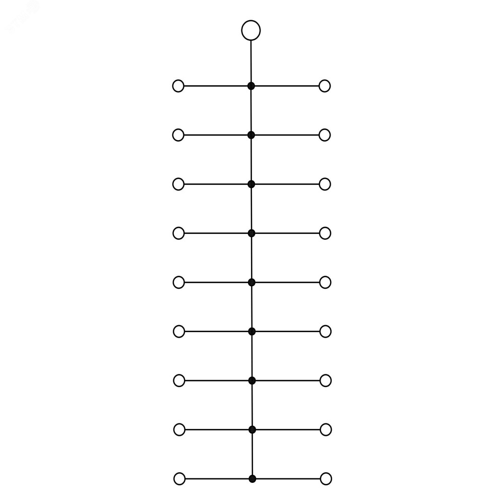 Описание Блок распределительный с верт. адаптером на рейки шириной 15/35мм, зажим push-in, 1 ввод 6 кв.мм, 18 точек подключения 2,5 кв.мм, серый