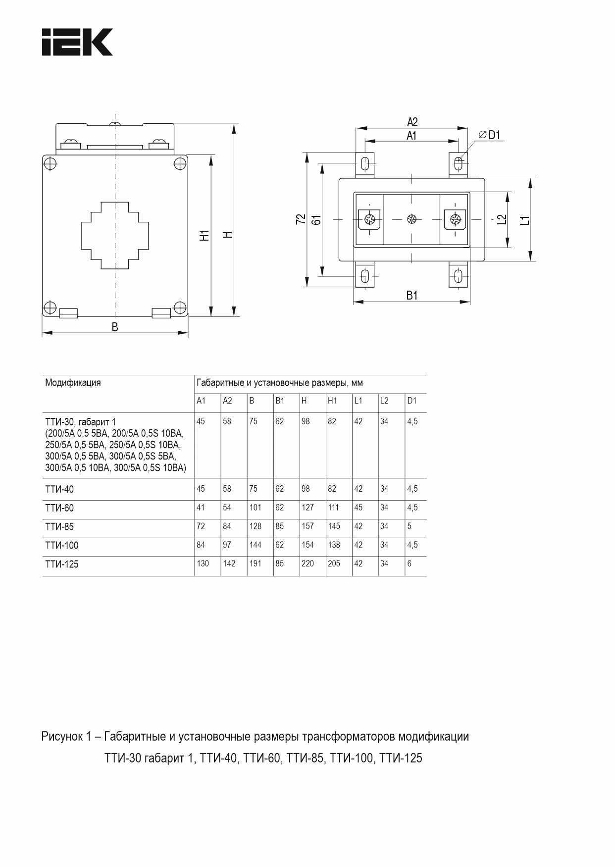 Описание Трансформатор тока ТТИ-60 1000/5А 10ВА класс 0,5 МПИ08 IEK ITT40-2-10-1000-08