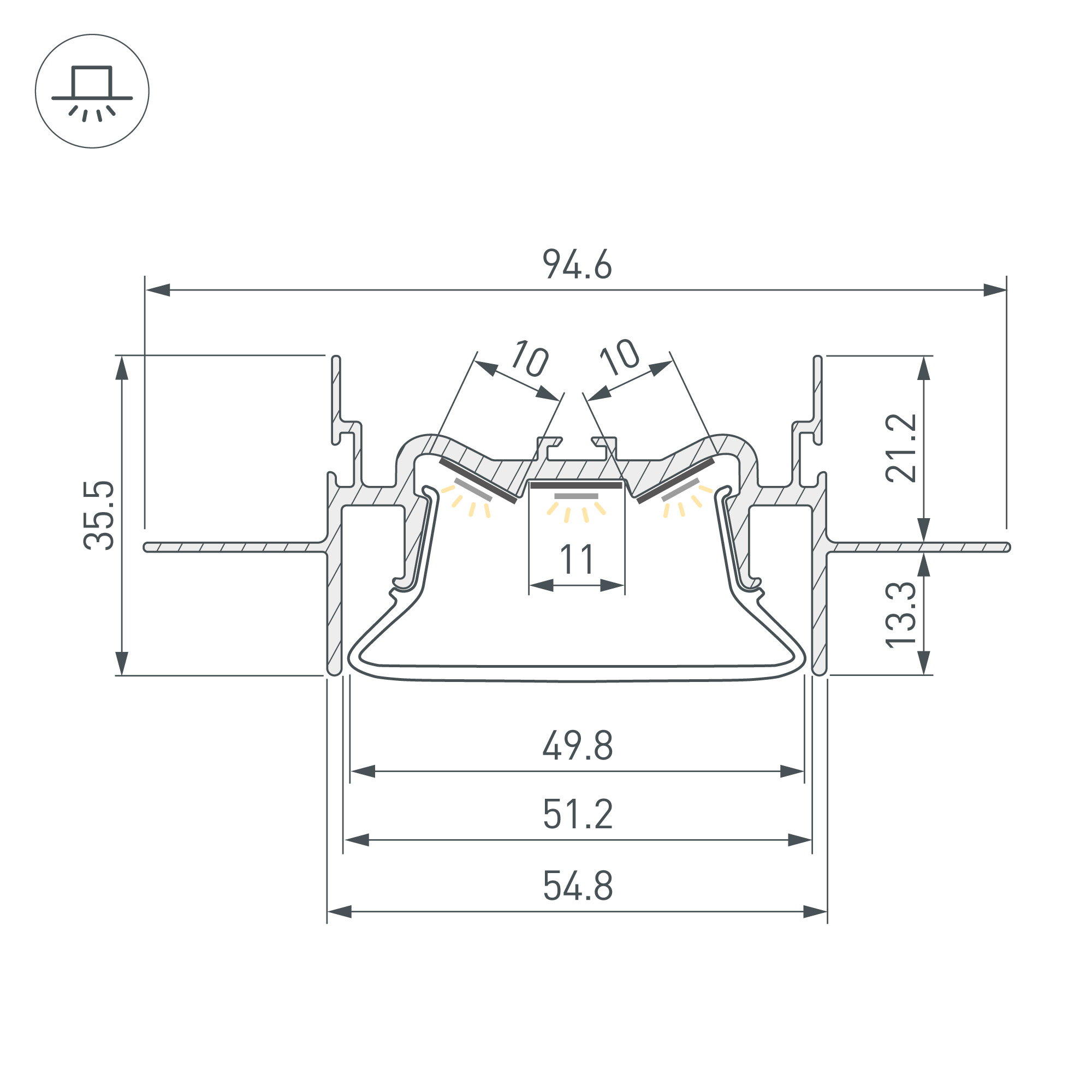 Описание Профиль FOLED-50-CEIL-CENTER-2000 035769