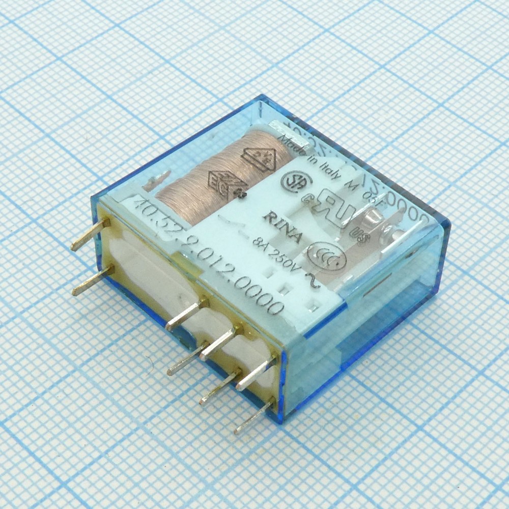 Доставка 40.52.9.012.0000 , Миниатюрное универсальное электромеханическое реле; монтаж на печатную плату или в розетку; выводы с шагом 5мм; 2CO 8A; контакты AgNi; катушка 12В DC; степень защиты RTII