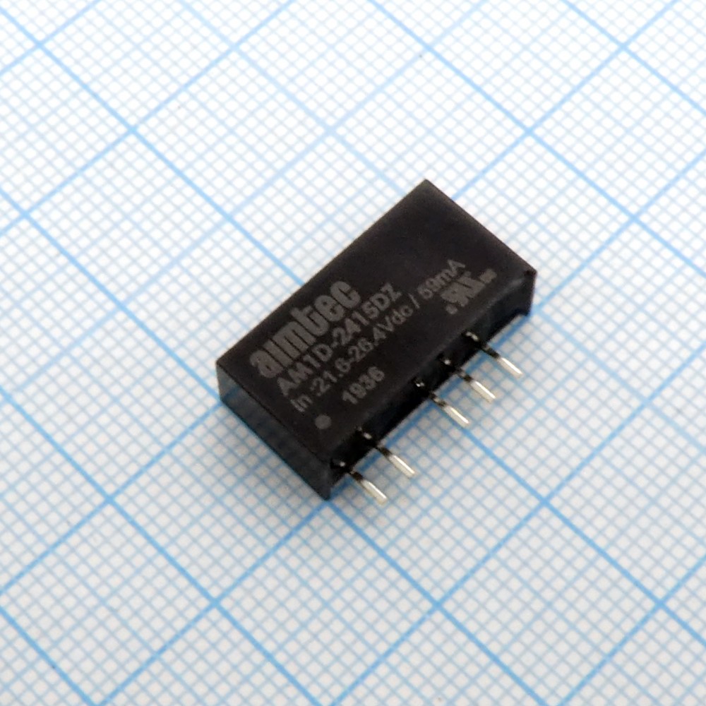 AM1D-2415DZ, DC/DC, 1Вт, вход 21.6…26.4В, выход ±15В/±0.033А, изоляция 1000В DC, КПД 80%, максимальная емкостная нагрузка не более ±100мкФ, SIP7, 19.5x6x10мм, -40…85°C, пластик