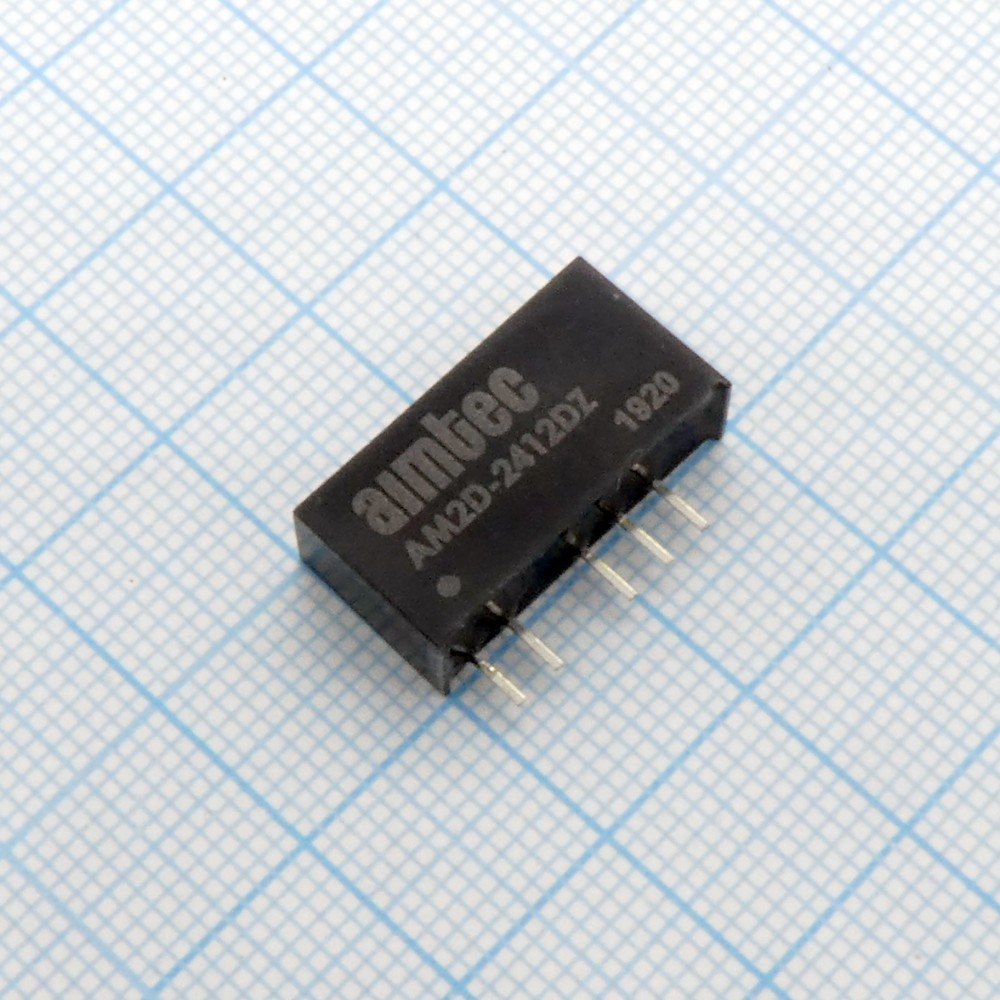 AM2D-2412DZ, DC/DC, 2Вт, вход 21.6…26.4В, выход ±12В/±0.083А, изоляция 1000В DC, КПД 82%, максимальная емкостная нагрузка не более ±220мкФ, SIP7, 19.5x6x10мм, -40…85°C, пластик