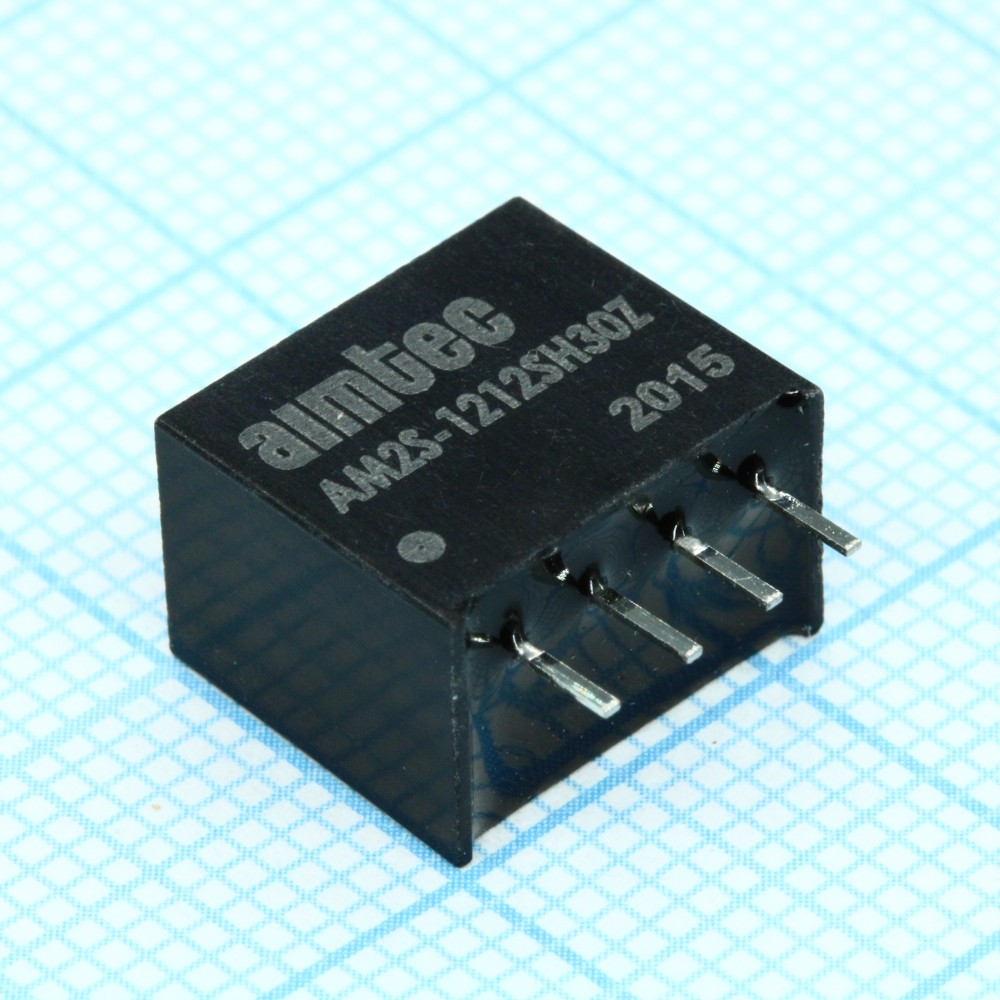 AM2S-1212SH30Z, DC/DC, 2Вт, вход 10.8…13.2В, выход 12В/0.167А, изоляция 3000В DC, КПД 85%, максимальная емкостная нагрузка не более 470мкФ, SIP4, 11.68x7.5x10.15мм, -40…85°C, пластик