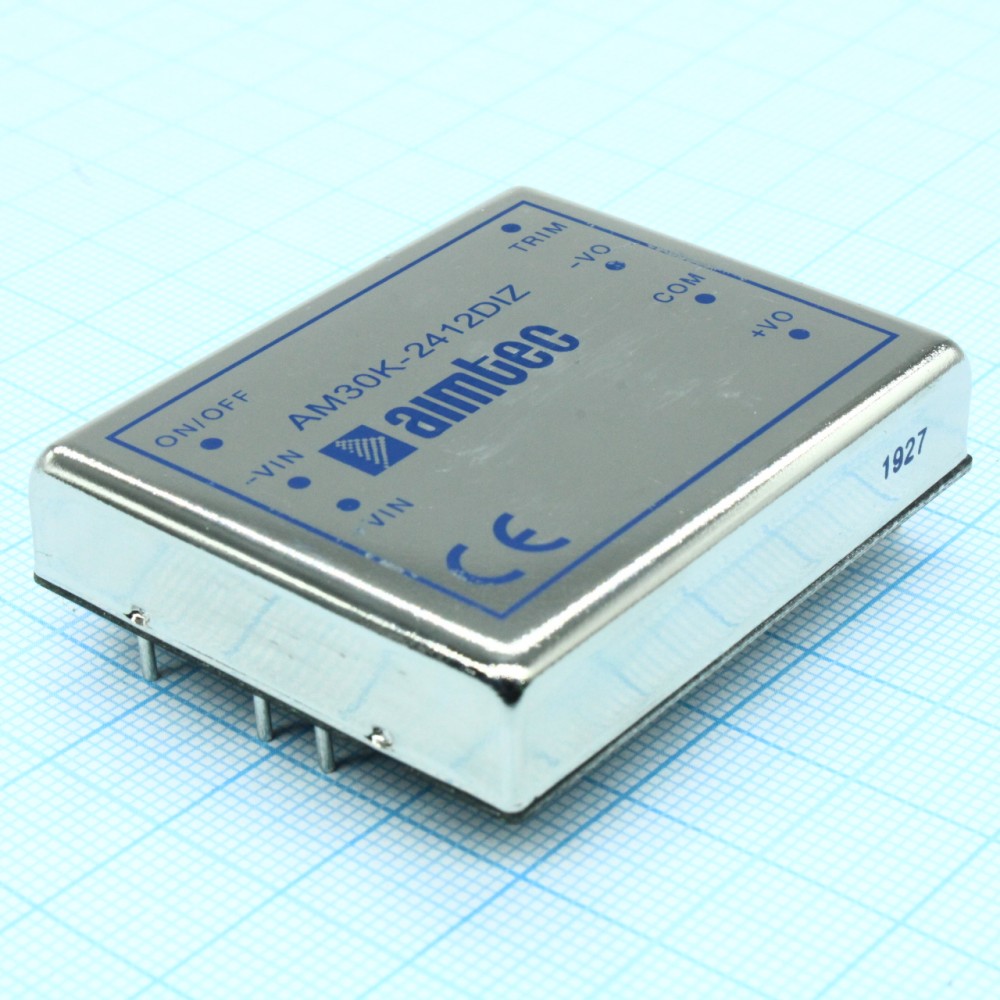 AM30K-2412DIZ, DC/DC, 30Вт, вход 18…36В, выход ±12В/±1.25А, изоляция 1500В DC, КПД 88%, вход On/Off, 2x1.6", 50.8x40.64x10.16мм, -40…85°C, металл