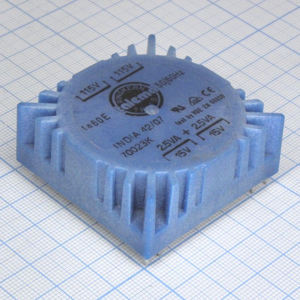 Тороидальный трансформатор 5ВА 2x115В 2x15В 167мА, для печатного монтажа