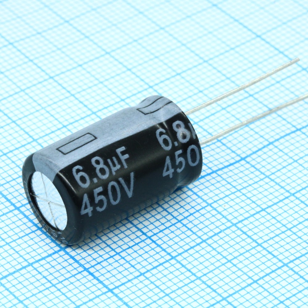 Конденсатор алюминиевый электролитический 6.8мкФ 450В ±20% (10 X 16мм) радиальные выводы 5мм 65мА 20000час 105°C
