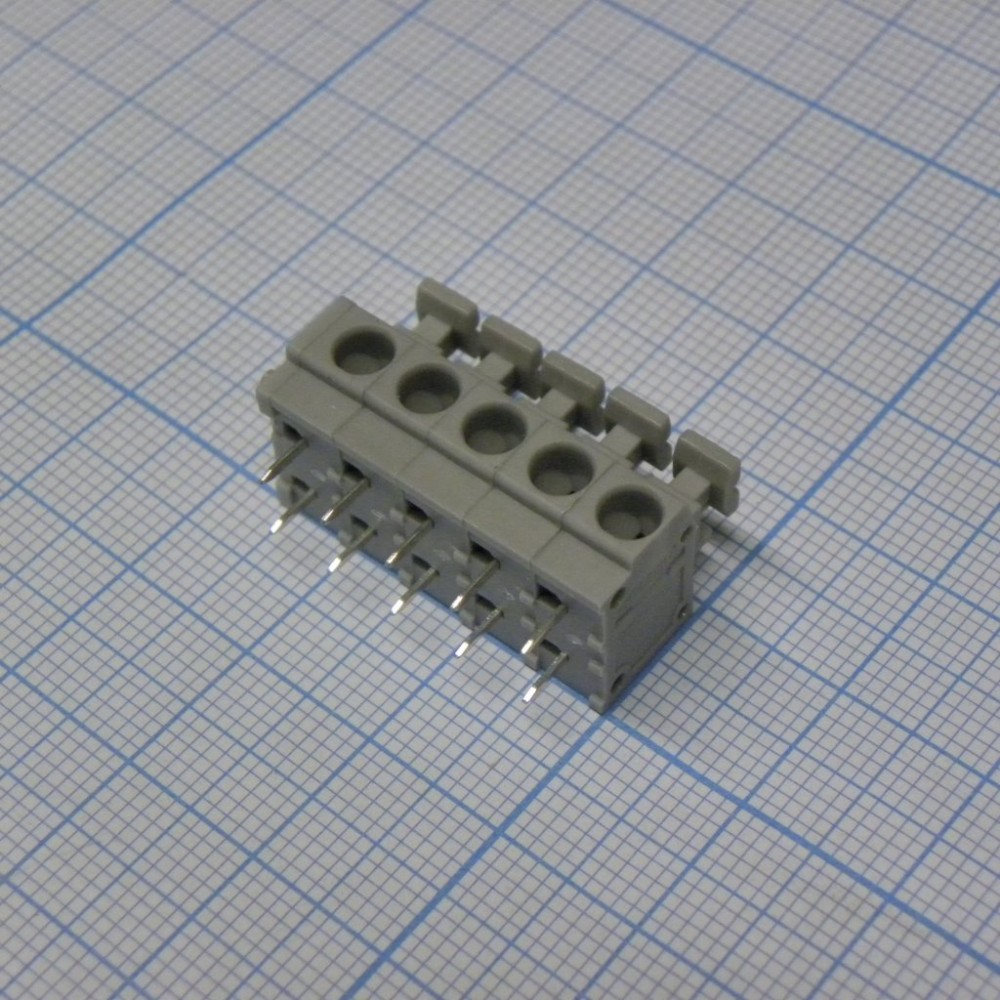 Нажимной безвинтовой клеммный блок 5 контактов. Зажим типа торцевой контакт. Серия DG235-5.0