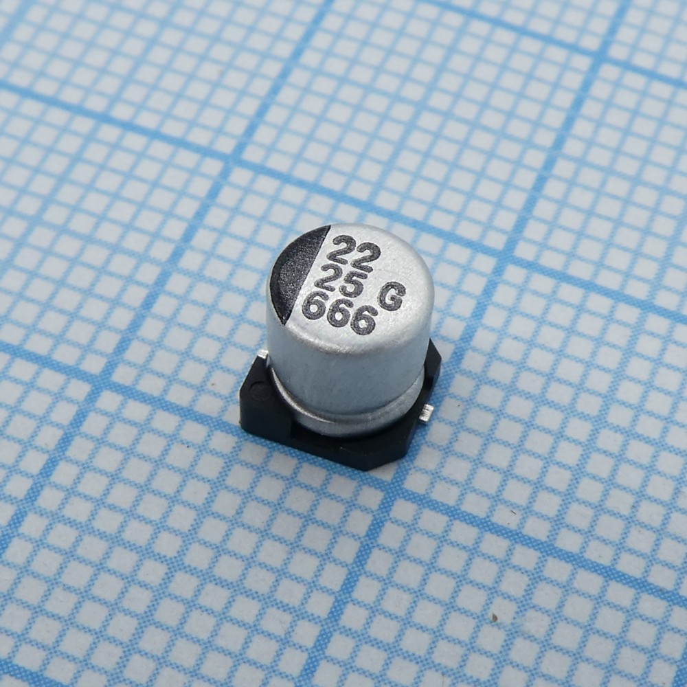 Конденсатор электролитический стандартный 25В 22мкФ ±20%, 2000 часов, -40...+85°C, 5х5.4мм