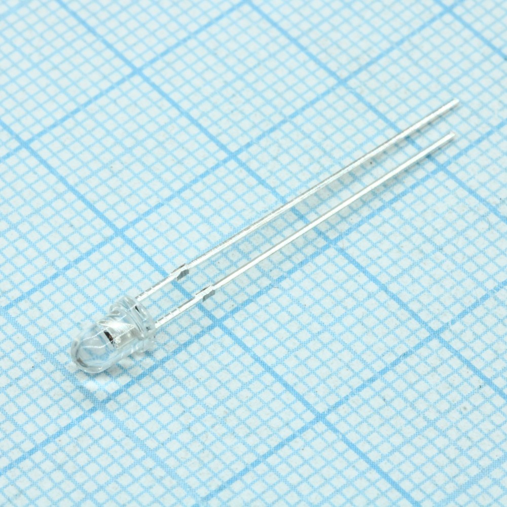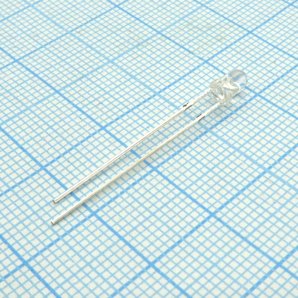 Светодиод 3мм/зеленый/565нм/20-40мкд/прозрачный корпус/50°