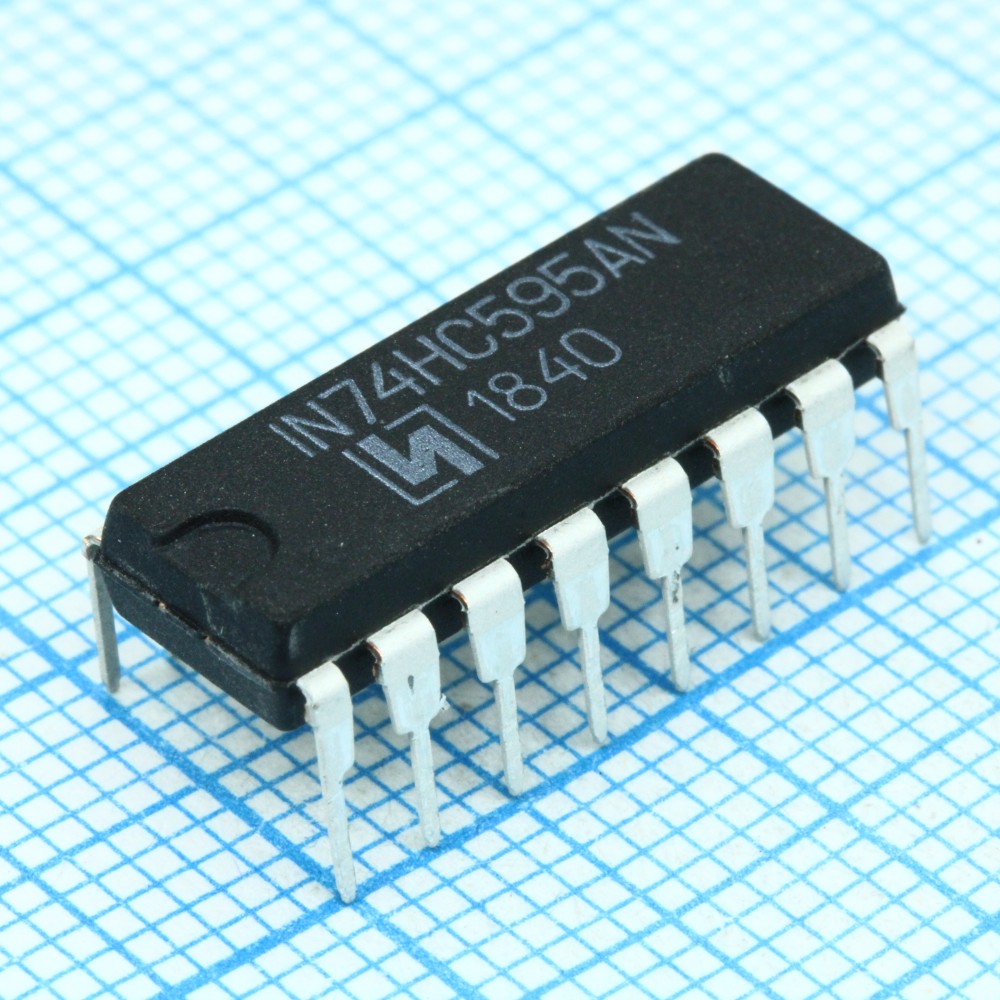IN74HC595AN, Регистр сдвиговый 8 бит последовательный вход, параллельно-последовательный выход с защелкой КМОП кристалл,