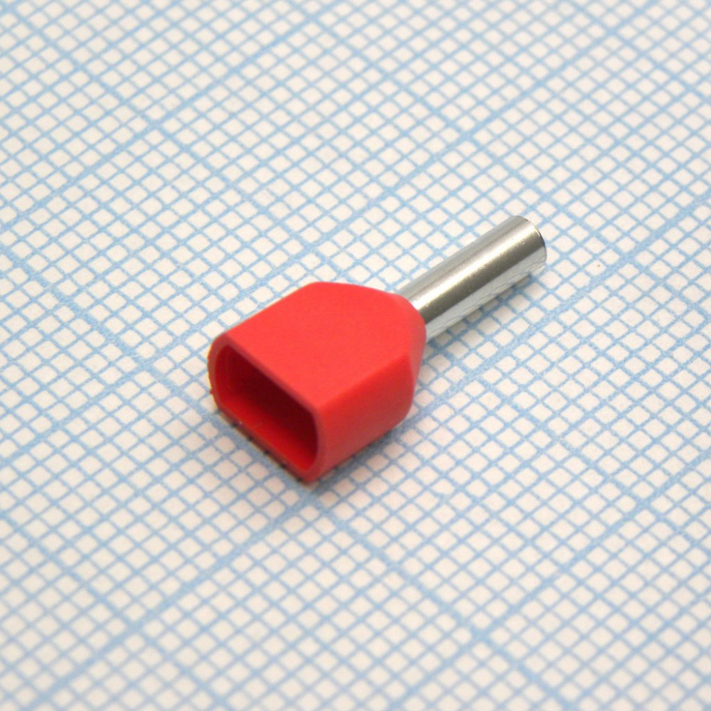 Доставка TE 1508 красный , наконечник кабельный торцевой сдвоенный трубчатый с изоляцией, L=15.5/8мм, провод 2х1.5мм2