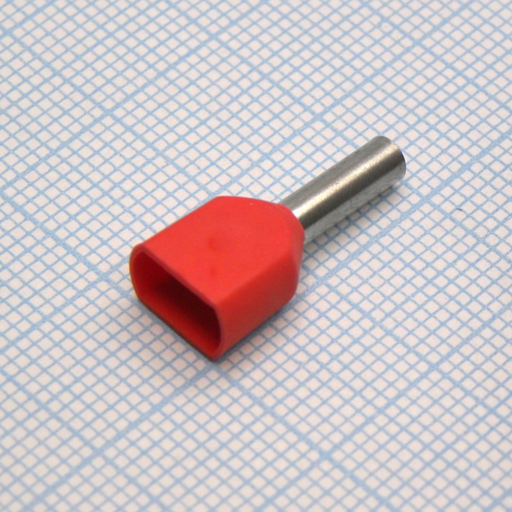 Доставка TE 2510 Red , наконечник кабельный торцевой сдвоенный трубчатый с изоляцией, L=18.5/10мм, провод 2х2.5мм2