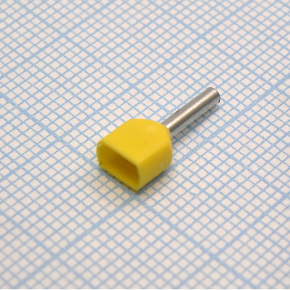 Доставка TE 0508 желтый , наконечник кабельный торцевой сдвоенный трубчатый с изоляцией, L=14.5/8мм, провод 2х0.5мм2