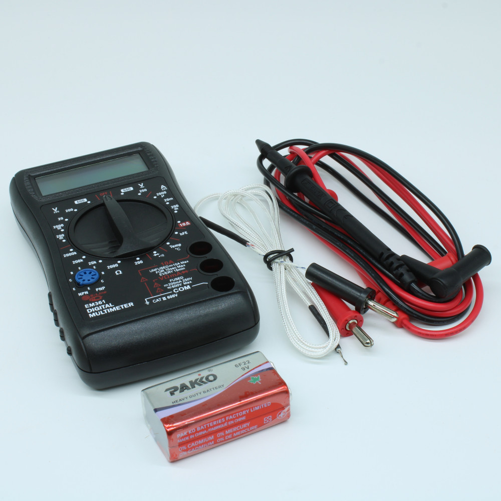 EM361, Мультиметр цифровой. Тест диодов, транзисторов, измерение температуры, тока, напряжения, сопротивления и другие параметры.