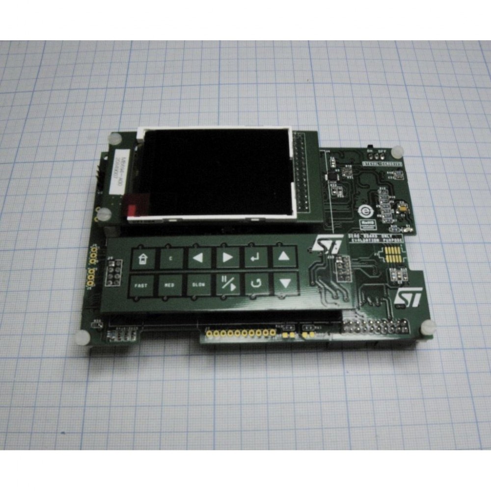 STEVAL-CCM001V2, отладочный комплект на базе STM32F103VET6. В составе LCD TFT 320*240, microSD, USB, JTAG, места для установки модулей ZigBee BlueTooth, сенсорная панель.