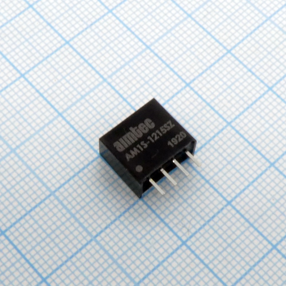 AM1S-1215SZ, DC/DC, 1Вт, вход 10.8…13.2В, выход 15В/0.067А, изоляция 1000В DC, КПД 79%, максимальная емкостная нагрузка не более 220мкФ, SIP4, 11.68x6x9.7мм, -40…85°C, пластик