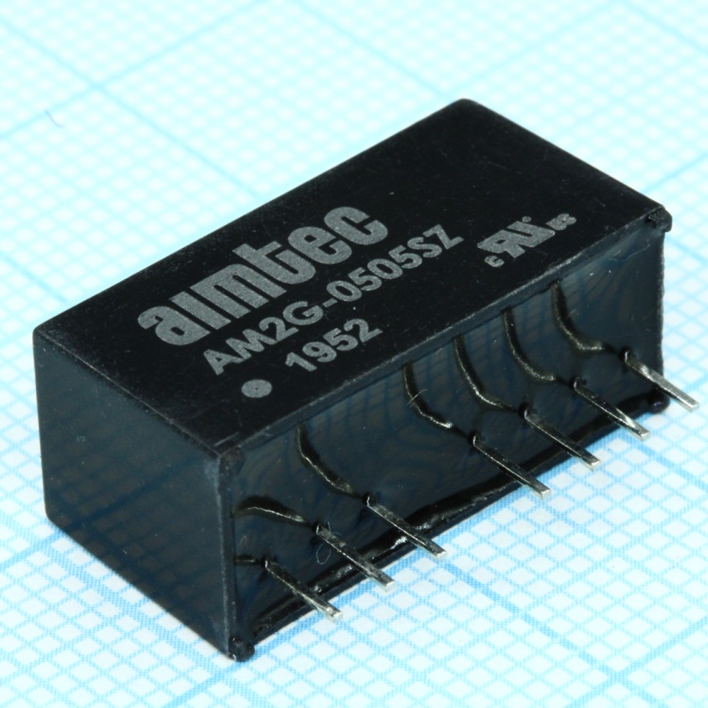 AM2G-0505SZ, DC/DC, 2Вт, вход 4.5…9В, выход 5В/0.4А, изоляция 1000В DC, КПД 70%, максимальная емкостная нагрузка не более 3300мкФ, вход On/Off, SIP8, 21.85x9.2x11.1мм, -40…85°C, пластик