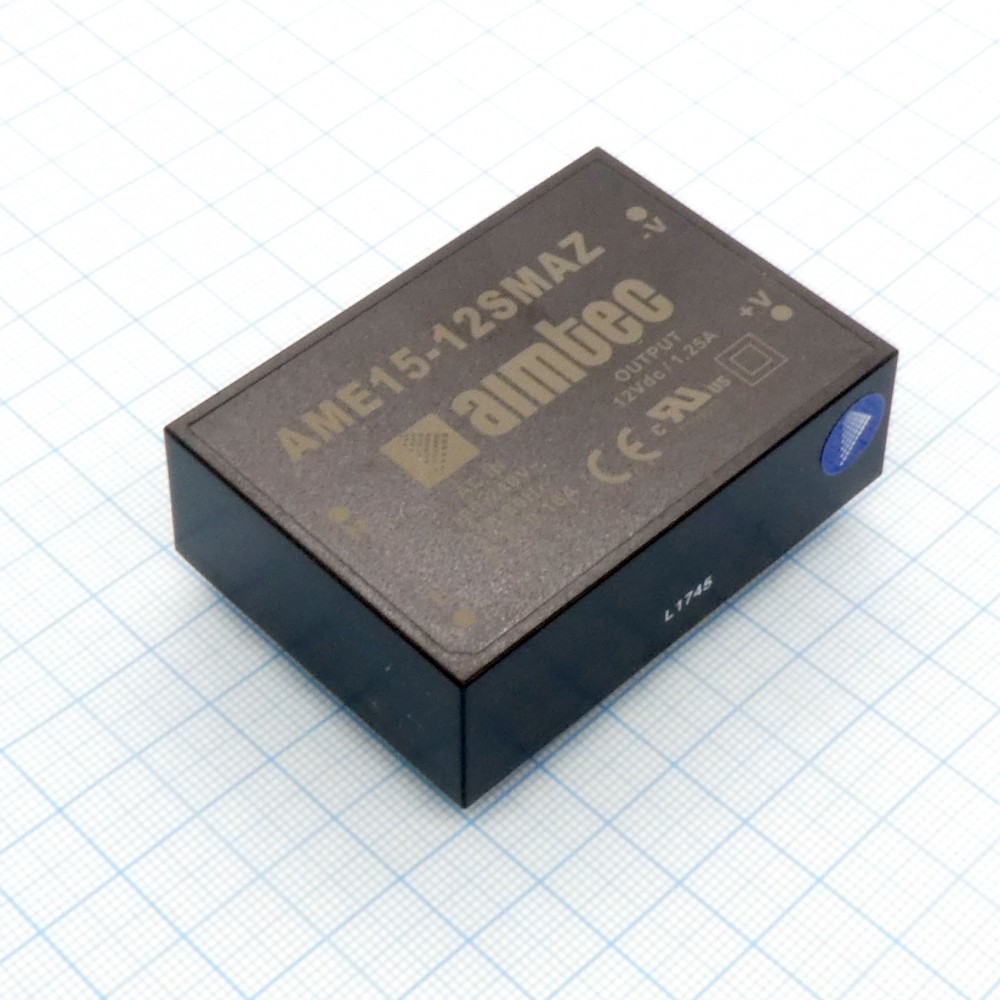 AME15-12SMAZ, AC/DC, 15Вт, вход 90…264В, выход 12В/1.25А, изоляция 4000В AC, КПД 79%, максимальная емкостная нагрузка не более 1000мкФ, 65x46.5x20.1мм, -40…85°C, пластик