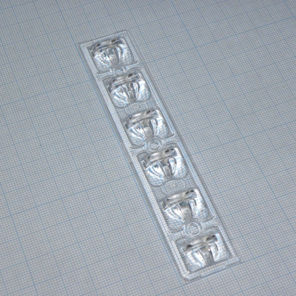 Линза линейка на 6 светодиодов LG Innotek серии LEMWA33X, эфф=93%, ассиметричная, 119,8x25,2x5,6 mm