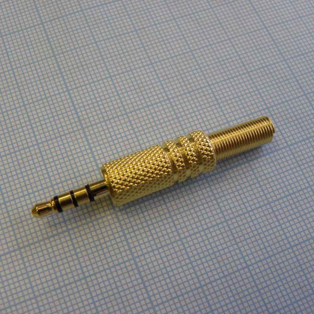 Доставка TRRS 3.5 (mini jack) штекер металл gold , Стерео аудио штекер 4конт 3.5 мм металлический кожух