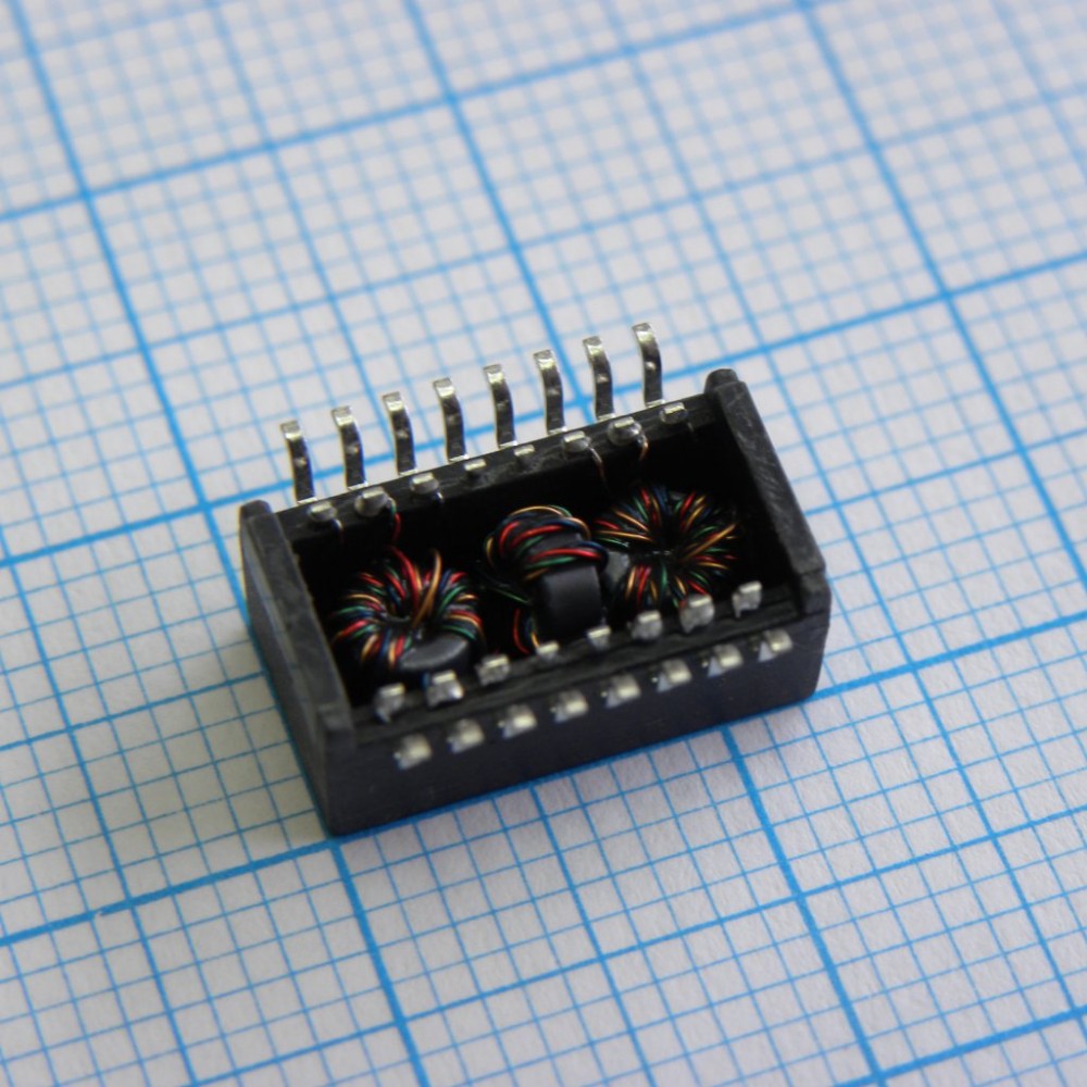 Телекоммуникационный трансформатор, 10/100Base-T 1CT:1CT, 16 выводов, 12.7x6.9x5.6mm