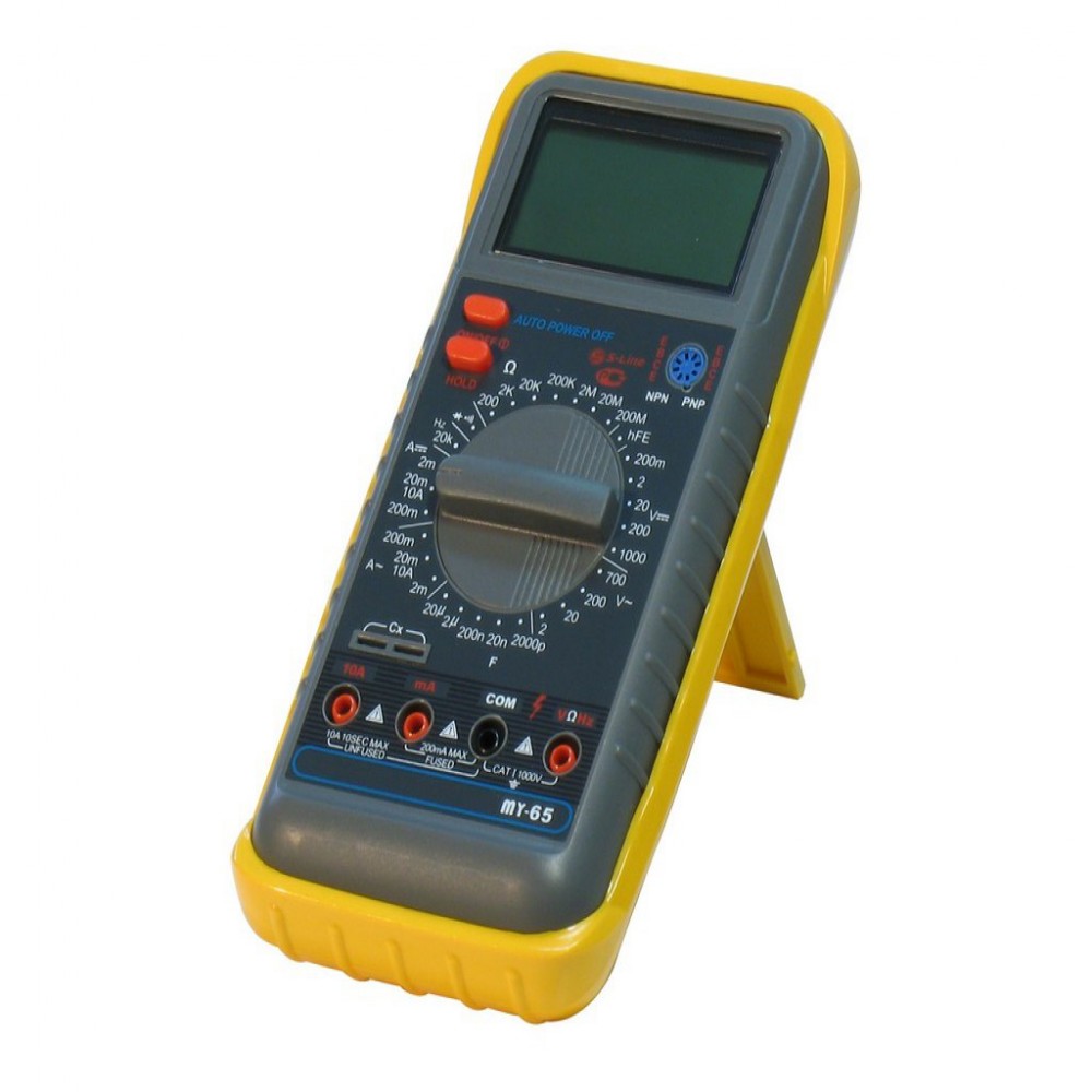 MY-65, Мультиметр цифровой с большим входным сопротивлением, имеет дополнительные функции: Data Hold, тока, напряжения, сопротивления, частоты и емкости, тест диодов и транзисторов, прозвон цепей.