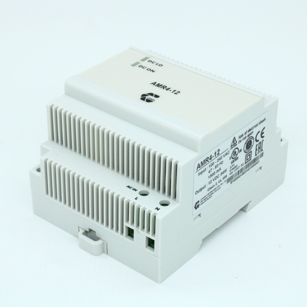 AMR4-12, Преобразователь AC-DC на DIN-рейку 60Вт, выход 12В/до 4.5А, вход 90...264 В AC 47...63Гц/120...370В DC, изоляция 3000В AC, в кожухе , 71х91х91мм, -40...+71°С