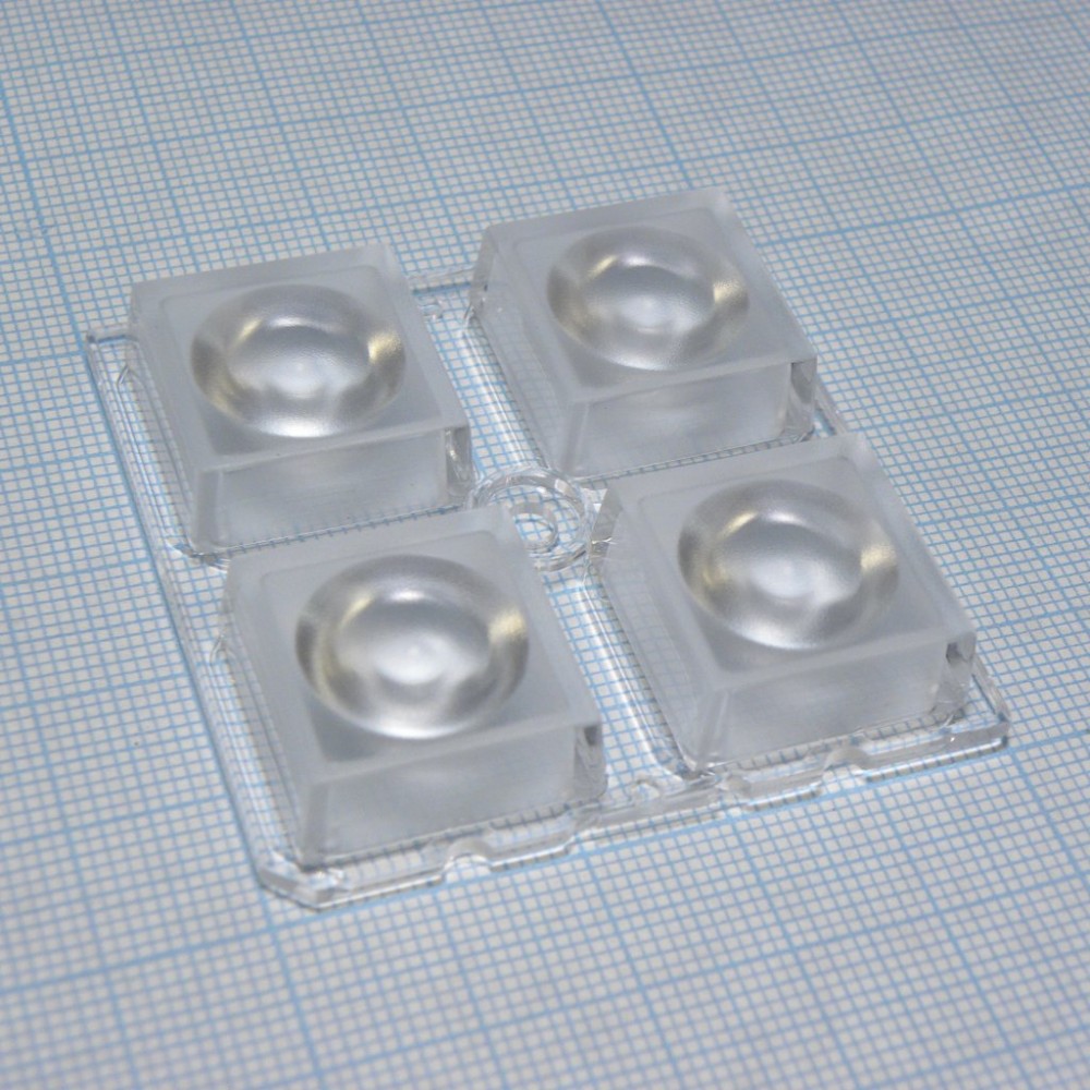 Квадратная модуль линза 2x2 на 4 светодиода LG Innotek серии LEMWA33X, эфф=89%, 68°, 50x50мм H:8,5мм
