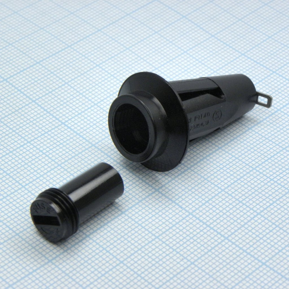 Держатель предохранителя 5х20mm, закрытого типа, монтаж на панель на защёлку, 250V, 6,3A, соединение крышки байонетное