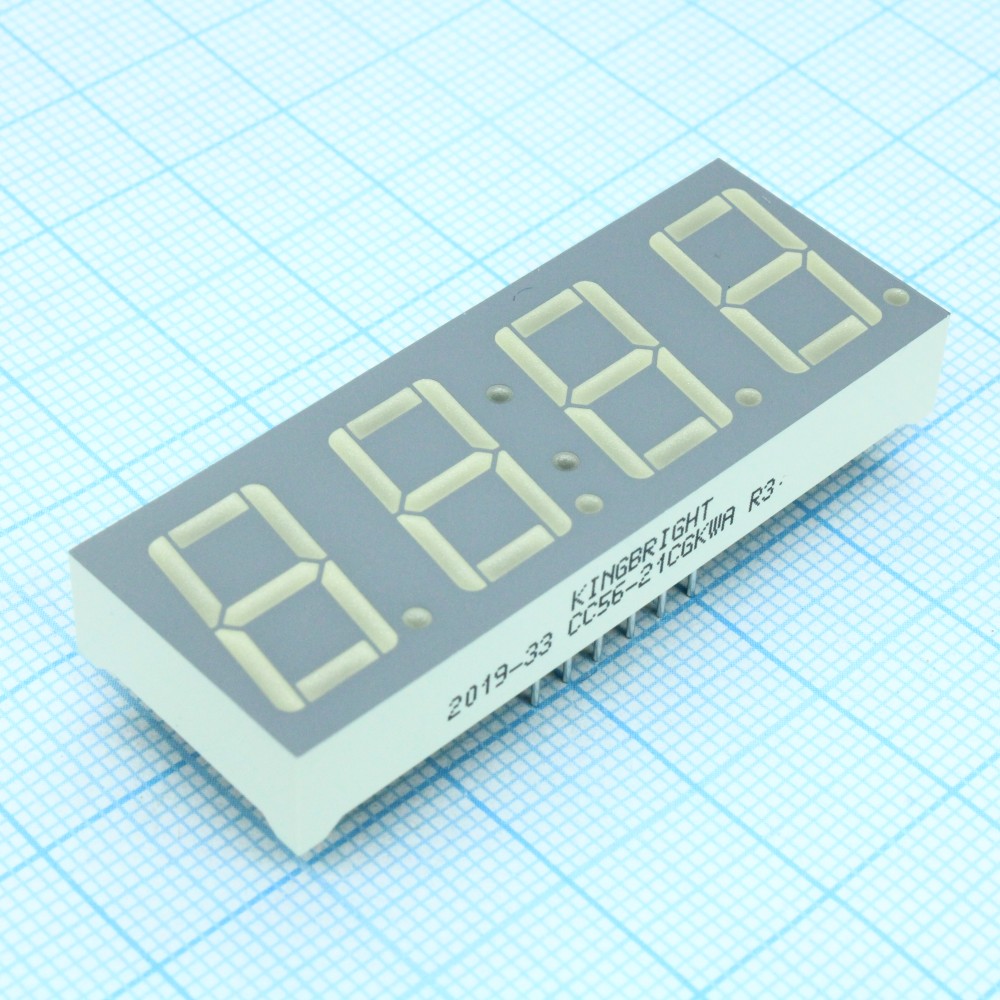 CC56-21CGKWA, 4-х разрядный индикатор 14,22мм/зеленый/570нм/5.6-12мкд