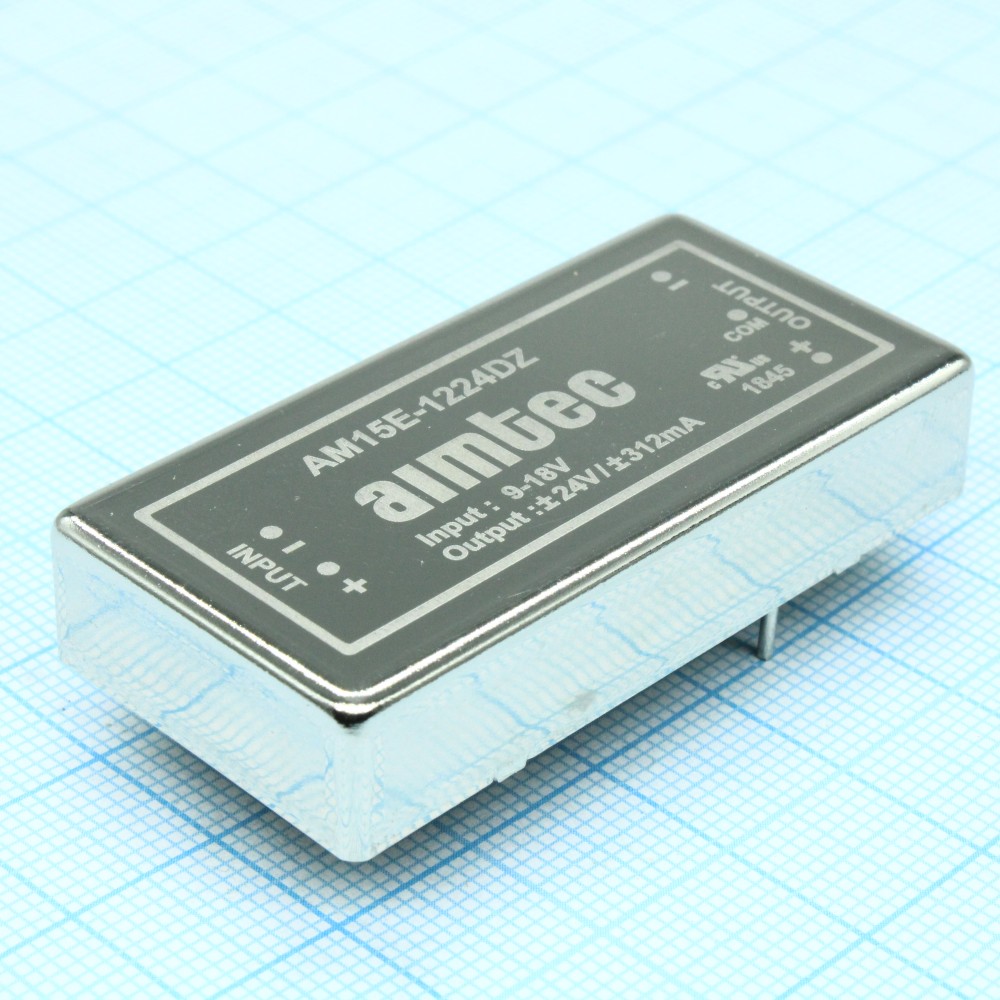 AM15E-1224DZ, DC/DC, 15Вт, вход 9…18В, выход ±24В/±0.31А, изоляция 1500В DC, КПД 85%, максимальная емкостная нагрузка не более ±220мкФ, 2x1", 50.8x25.4x10.16мм, -40…85°C, металл