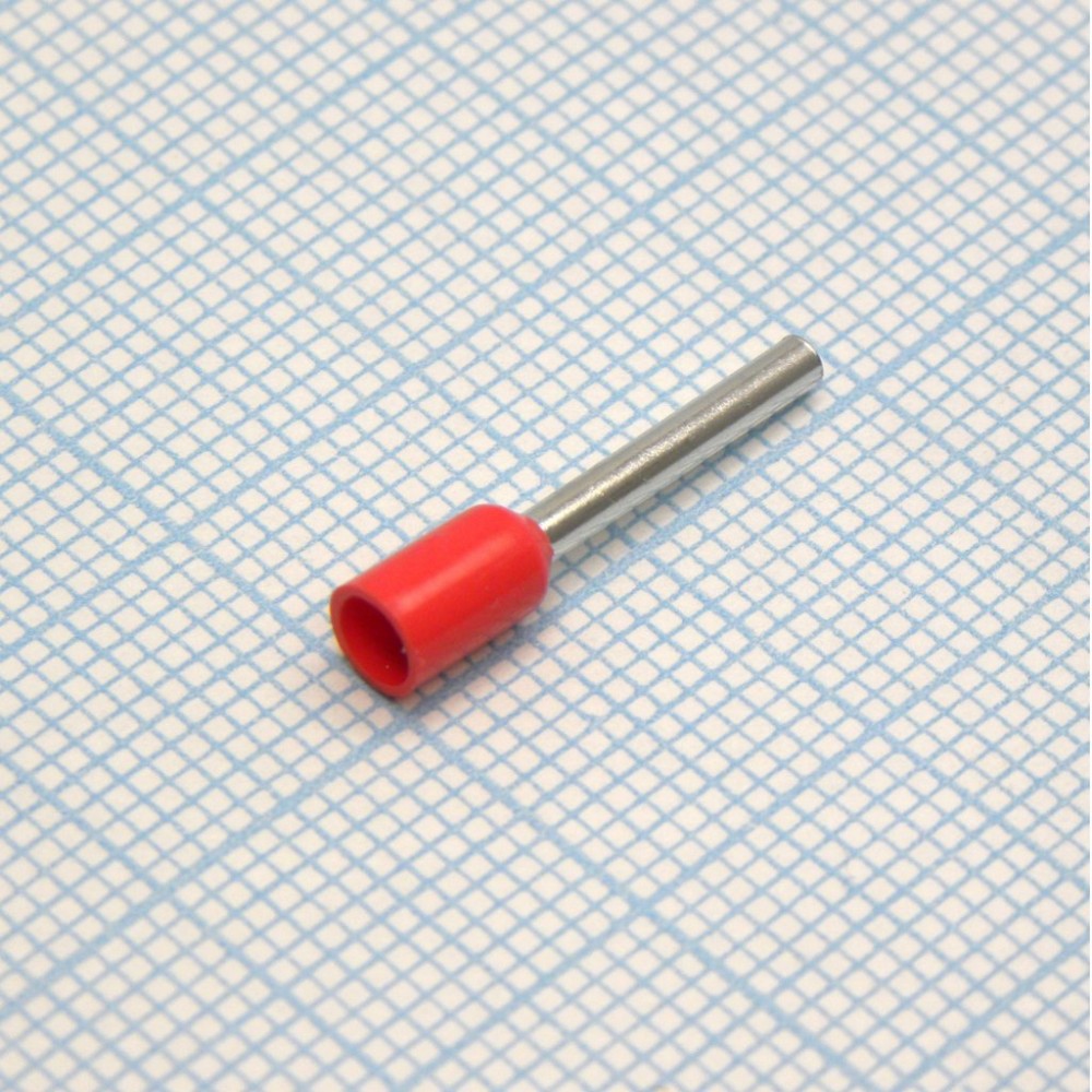 HE 1012 Red, наконечник кабельный торцевой трубчатый с изоляцией, L=18.4/12мм, сеч. пров. 1.0мм2