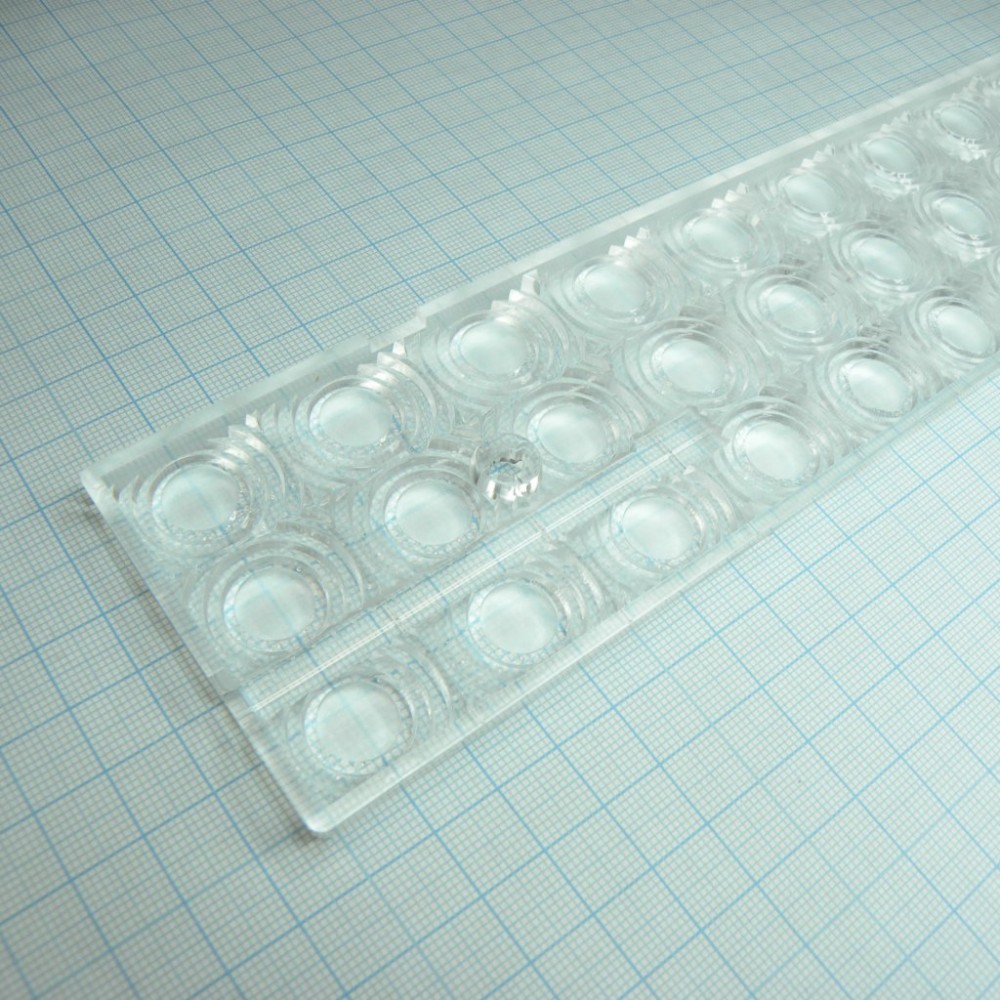 Групповая линза 3x11 под 33 светодиода LG Innotek серий LEMWS36/LEMWH51/LEMWS59/LEMWS68 , офисная диаграмма направленности 92° , эфф=88%, 286x61x8,45 мм