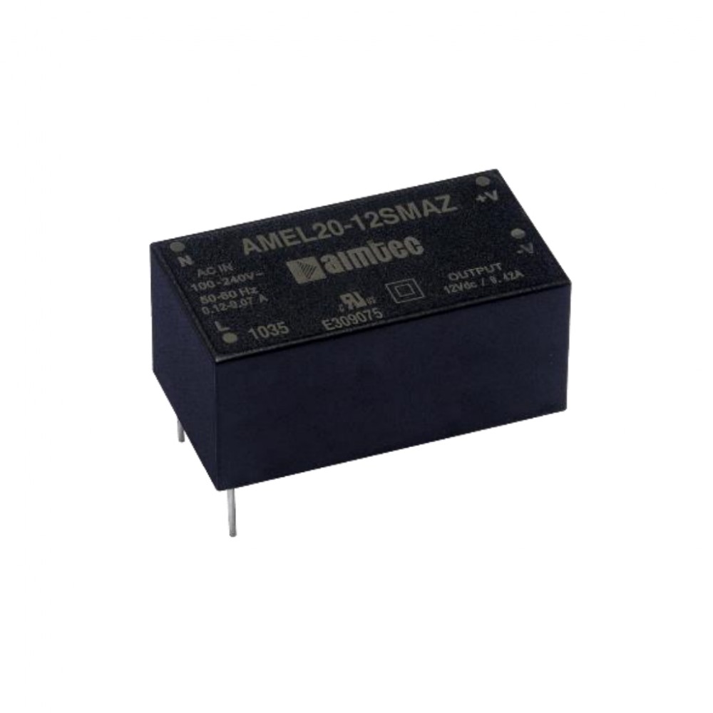 AMEL20-24SMAZ, AC/DC, 20Вт, вход 90…264В, выход 24В/0.84А, изоляция 4000В AC, КПД 78%, максимальная емкостная нагрузка не более 1000мкФ, 56.48x30.86x25.1мм, -40…70°C, пластик