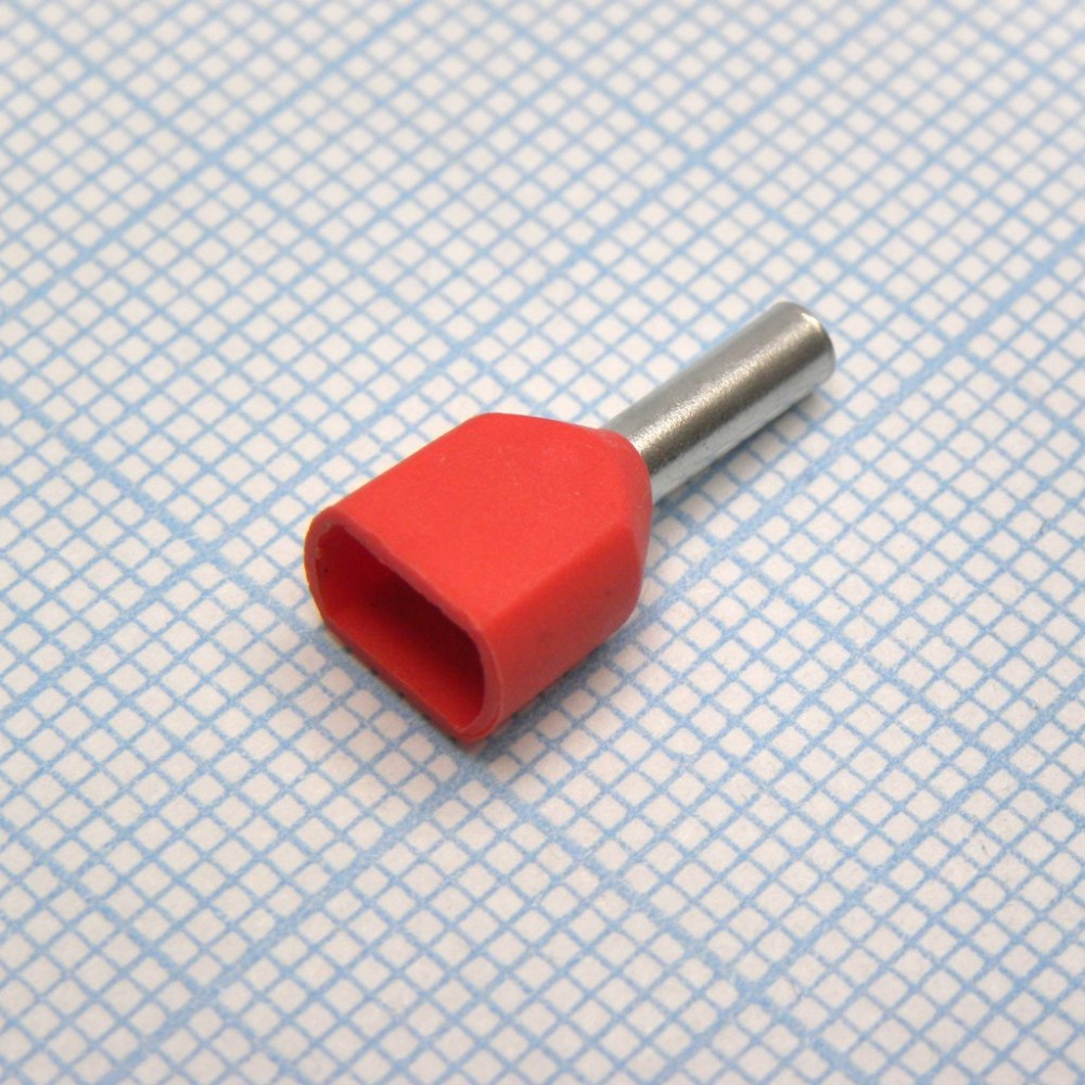 Доставка TE 1508 Red , наконечник кабельный торцевой сдвоенный трубчатый с изоляцией, L=15.5/8мм, провод 2х1.5мм2