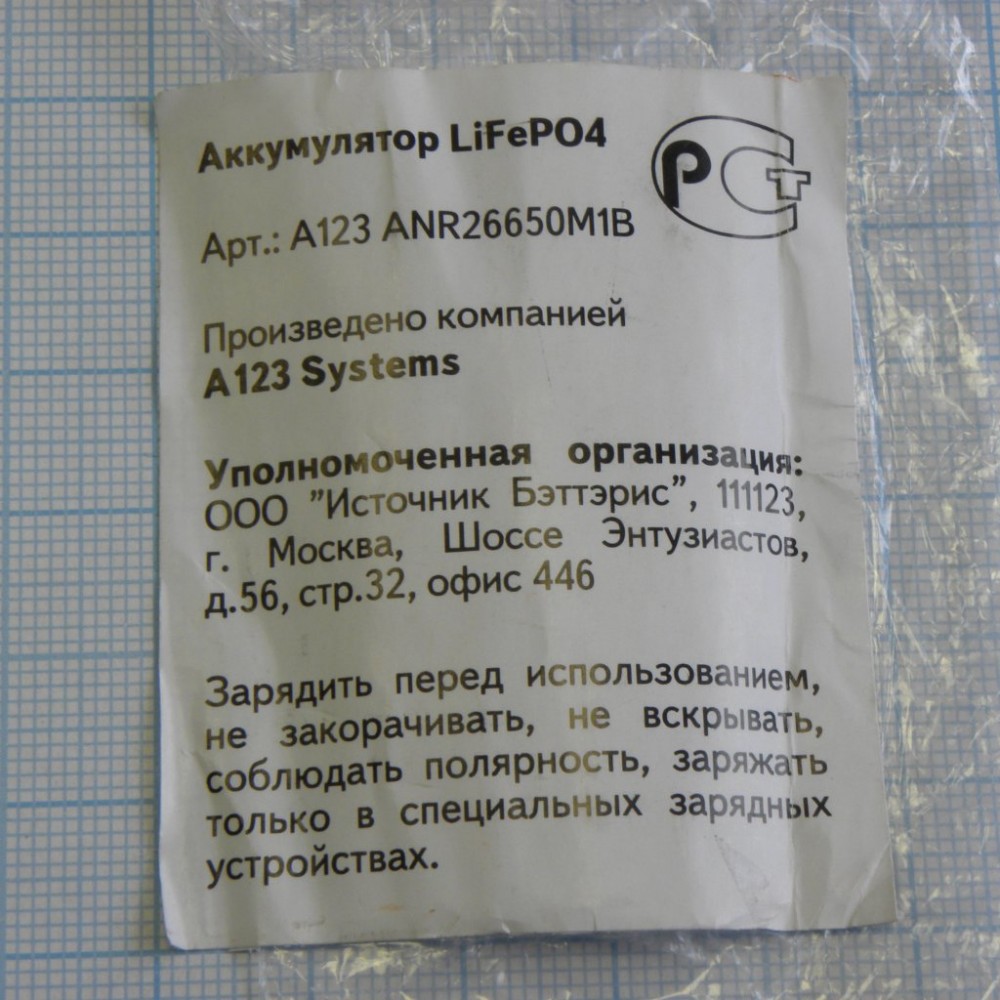 Доставка Аккумулятор 26х65мм ANR26650M1B , Аккумулятор литий-железо-фосфатный (Li-FePo4)