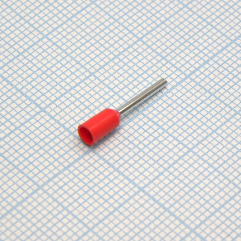 HE 0510 Red, наконечник кабельный торцевой трубчатый с изоляцией, L=16/10мм, сеч. пров. 0.5мм2