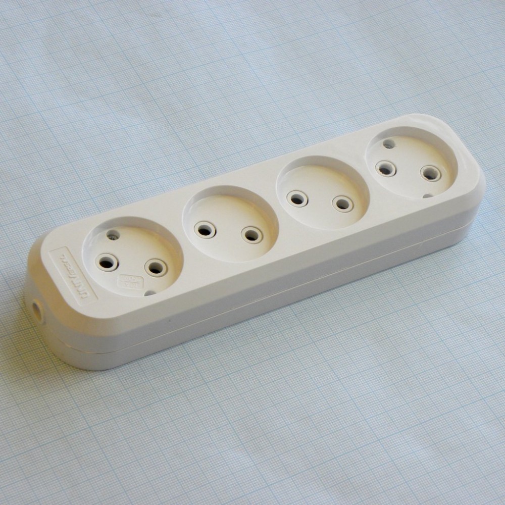 Колодка розеточная x4 10А, 10А,250В,АБС-пластик,Е204