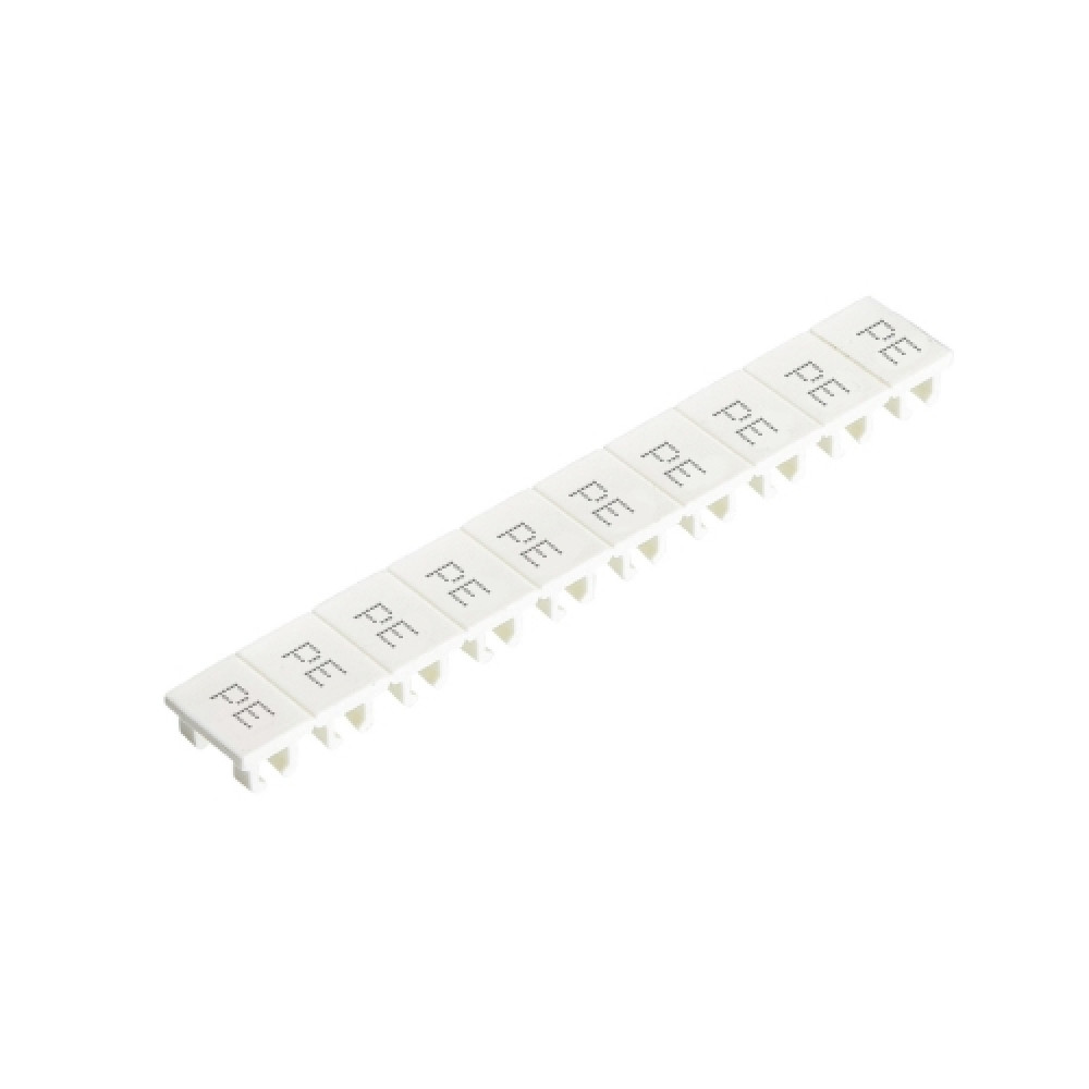 Доставка Маркировка для клемм (полоска) 9705A/5/10B PE , Маркировочные шильдики, для клемм сечением 2,5 мм.кв., боковая / верхняя, 10 шильдиков, нанесенные символы: PE, с горизонтальным расположением, размер шильдика: 4,8 x 8,3 мм, цвет: белый