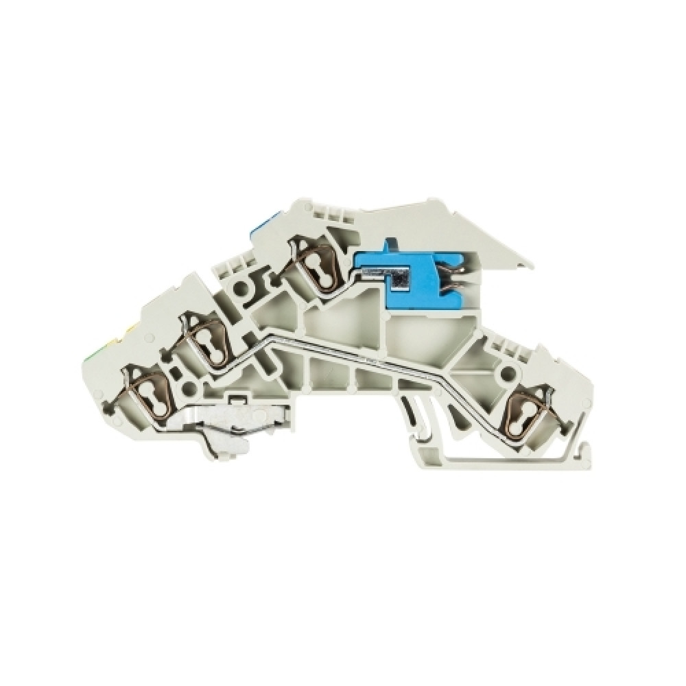 Этажная клемма, 3 этажа, N-L-PE, нижний ряд с заземлением, тип фиксации провода: пружинный, номинальное сечение: 2,5 мм кв., 24A, 400V, ширина: 5 мм, цвет: серый, тип монтажа: DIN35